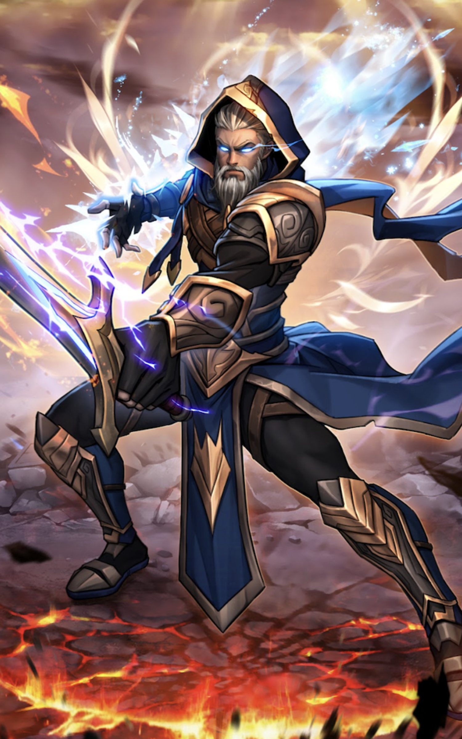 Stamped as a renegade sorcerer, he was condemned by his peers to eternally fight on the Athelan Battlegrounds. Given no choice in the matter, Erlic chose to master his concept of elemental swordplay, meshing swordsmanship with the power of nature. He now fights to inscribe his legacy upon the world of magic.